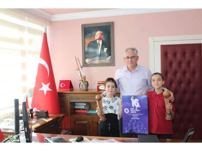 İlçe Milli Eğitim Müdürümüz, öğrencilerin elde ettikleri başarıdan dolayı tebrik ederken onlara hediyeler takdim etti.